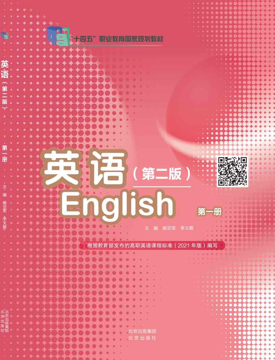《新时代职场贯通英语》第一册教材从仁、义、礼、智、信及人与自然的六大主题,结合职场和生活中的相关社会热点话题和材料进行设计和编写,内容包括爱与奉献、承担责任、团队合作、享受高科技智能生活、诚信很重要,中国让世界更美好,旨在培养学生正确的价值观和人生观,为其职业生涯和终身发展奠定基础。